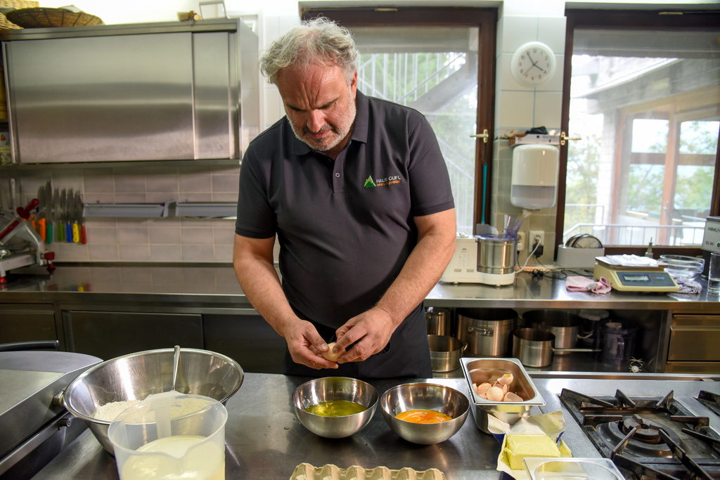 Trennt man die Eier und schlägt das Eiklar zu Schnee, wird aus dem Palatschinkenteig die Basis für Kaiserschmarren. Dabei wird der flaumische Teig ebenfalls in der Pfanne von beiden Seiten angebraten, dann aber während des Bratvorgangs mit der Gabel zerrissen und erhält so sein bröckeliges Aussehen. Serviert mit Zwetschgenröster ist er ein Klassiker der österreichischen Mehlspeisküche.
